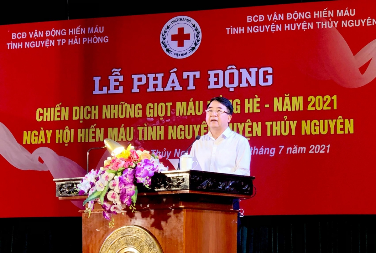 Sáng 18/7, tại Trung tâm Văn hóa – Thông tin và Thể thao huyện Thủy Nguyên, Ban Chỉ đạo Vận động hiến máu tình nguyện thành phố đã chỉ đạo Ban Chỉ đạo HMTN huyện Thủy Nguyên tổ chức Lễ phát động Chiến dịch những giọt máu hồng hè năm 2021 và Ngày hội hiến máu tình nguyện huyện Thủy Nguyên. Tới dự có ông Lê Khắc Nam, Phó Chủ tịch Ủy ban nhân dân thành phố, Trưởng Ban Chỉ đạo Vận động hiến máu tình nguyện thành phố Hải Phòng, bà Cao Thị Phượng – Phó Trưởng ban thường trực Ban Chỉ đạo HMTN thành phố, Chủ tịch Hội Chữ thập đỏ thành phố, ông Nguyễn Văn Viển – Phó Chủ tịch UBND huyện Thủy Nguyên; các ông, bà Thường trực Hội Chữ thập đỏ thành phố và các quận huyện, các phòng, ban, ngành liên quan huyện Thủy Nguyên và đông đảo người dân đến đăng ký HMTN.