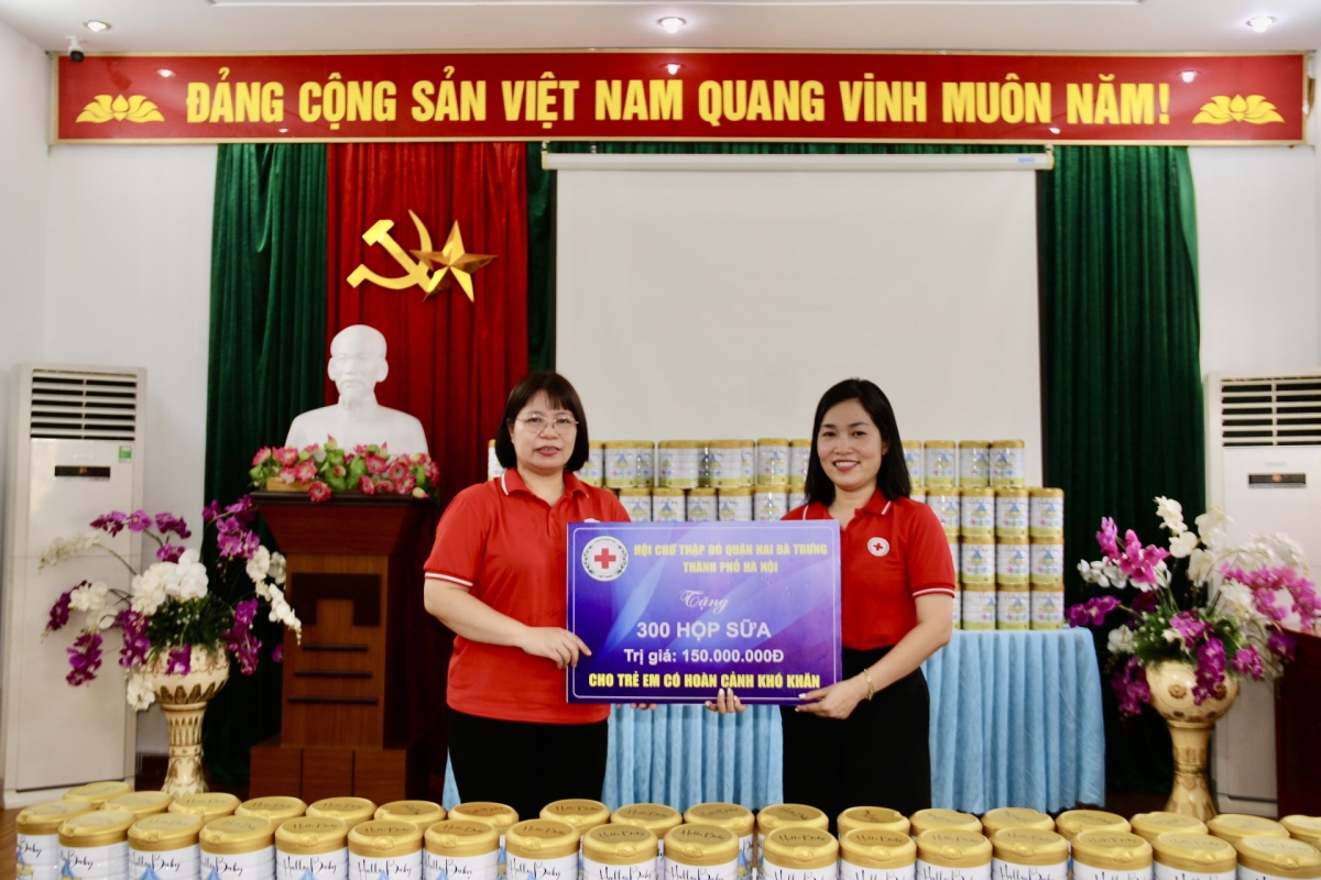 Tại chương trình Hội Chữ thập đỏ quận Hai Bà Trưng đơn vị kết nghĩa với Hội Chữ thập đỏ quận Ngô Quyền đã trao 300 hộp sữa dinh dưỡng cho trẻ em độ tuổi từ 3 – 5 tuổi đang theo học tại trường. Tổng giá trị nhân đạo đạt 150 triệu đồng.