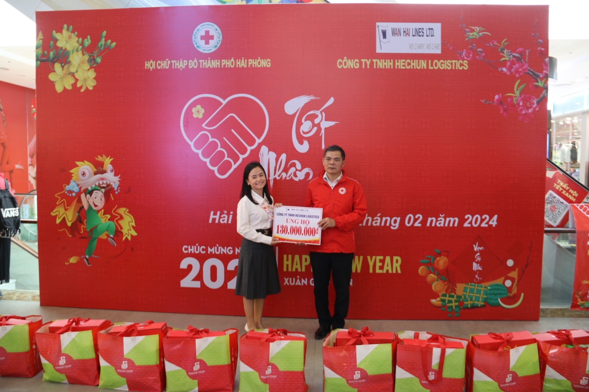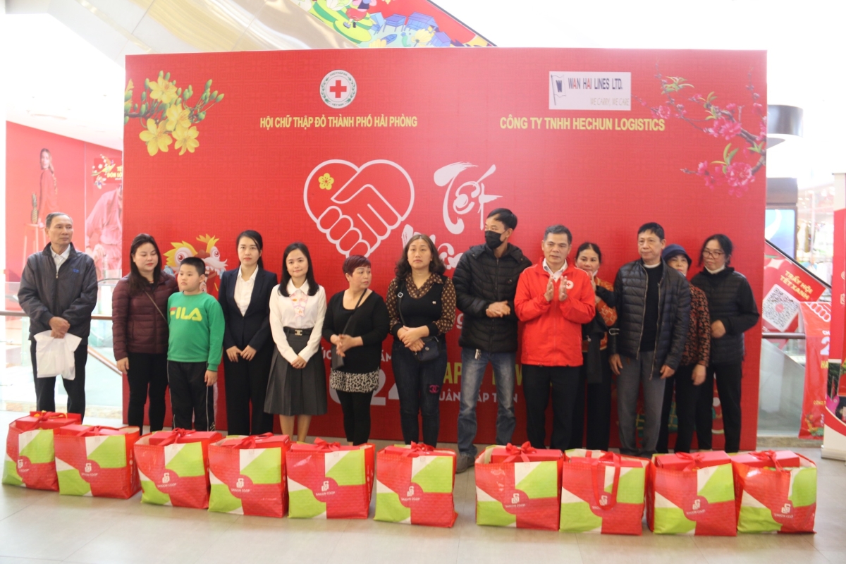 Tại chương trình Hội Chữ thập đỏ thành phố cùng nhà tài trợ - công ty Hechun Logistics đã trao 200 suất quà Tết cho người dân có hoàn cảnh khó khăn, trẻ mồ côi, đối tượng chính sách xã hội… sống trên địa bàn quận Ngô Quyền, Lê Chân, Hồng Bàng. Mỗi túi quà gồm các nhu yếu phẩm: gạo, bánh, kẹo, nước ngọt, mì chính, dầu ăn…trị giá 500.000đ/suất. Tổng giá trị nhân đạo đạt trên 100 triệu đồng.
