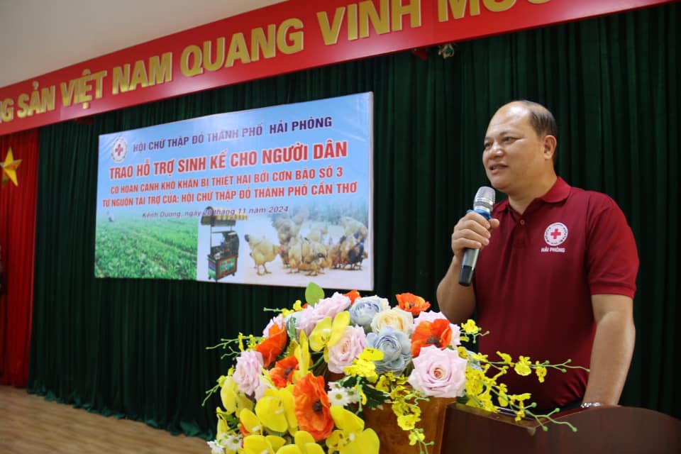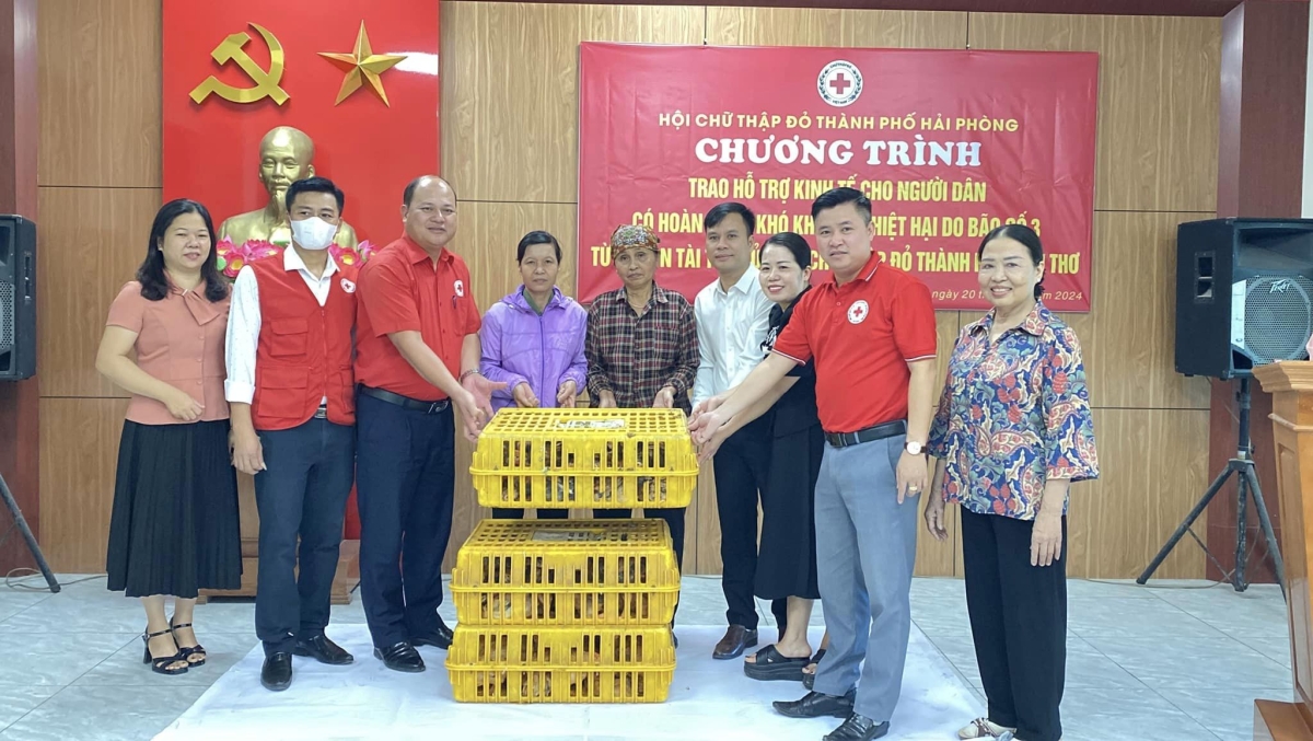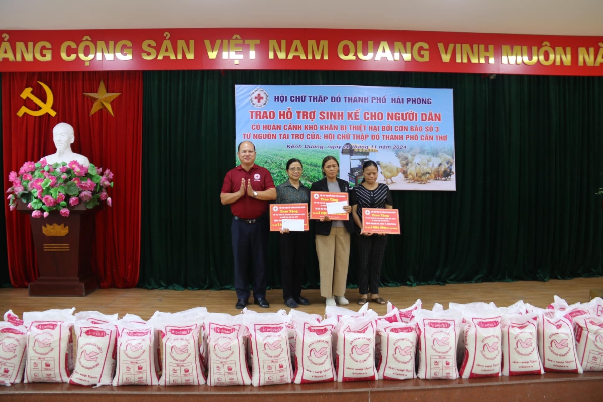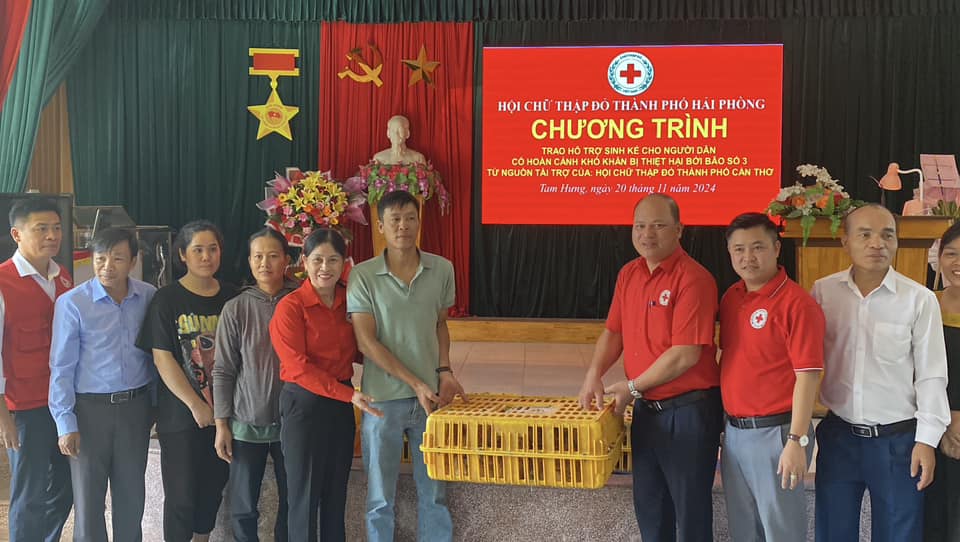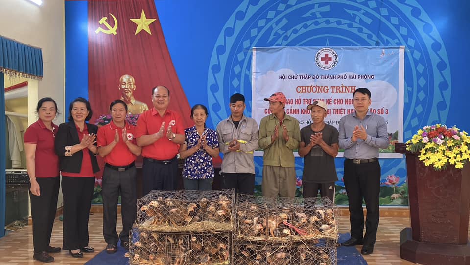 Hội Chữ thập đỏ thành phố trao sinh kế 7 hộ gia đình có hoàn cảnh khó khăn chịu thiệt hại bởi bão số 3 sinh sống trên địa bàn xã Hùng Thắng, huyện Tiên Lãng và xã Thái Sơn, huyện An Lão 220 con giống (gà, ngan). Tại huyện Thủy Nguyên, Hội Chữ thập đỏ thành phố trao sinh kế 5 hộ gia đình có hoàn cảnh khó khăn chịu thiệt hại bởi bão số 3 sinh sống trên địa bàn xã Mỹ Đồng, Tam Hưng, Phả Lễ 220 con gà giống. Tại phường Kênh Dương quận Lê Chân, hội Chữ thập đỏ thành phố trao sinh kế cho 3 hộ dân có hoàn cảnh khó khăn mỗi hộ 5 triệu đồng tiền mặt (để mua dụng cụ bán hàng ăn sáng, bán rau, máy ép nước mía). Tổng giá trị nhân đạo đạt 73 triệu đồng. Kinh phí hỗ trợ sinh kế từ nguồn hỗ trợ của Hội Chữ thập đỏ thành phố Cần Thơ.
