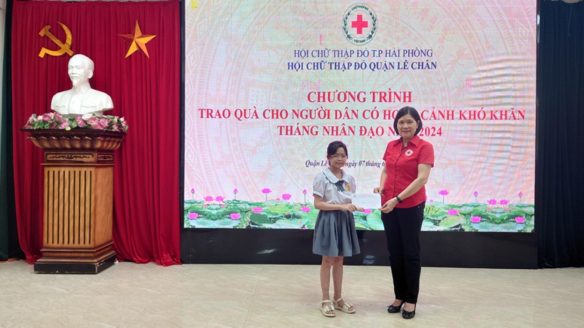 Thực hiện Tháng nhân đạo năm 2024, sáng ngày 7/6 Hội Chữ thập đỏ thành phố cùng Hội Chữ thập đỏ quận Lê Chân tổ chức Chương trình trao quà cho người dân có hoàn cảnh khó khăn năm 2024.