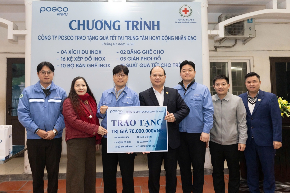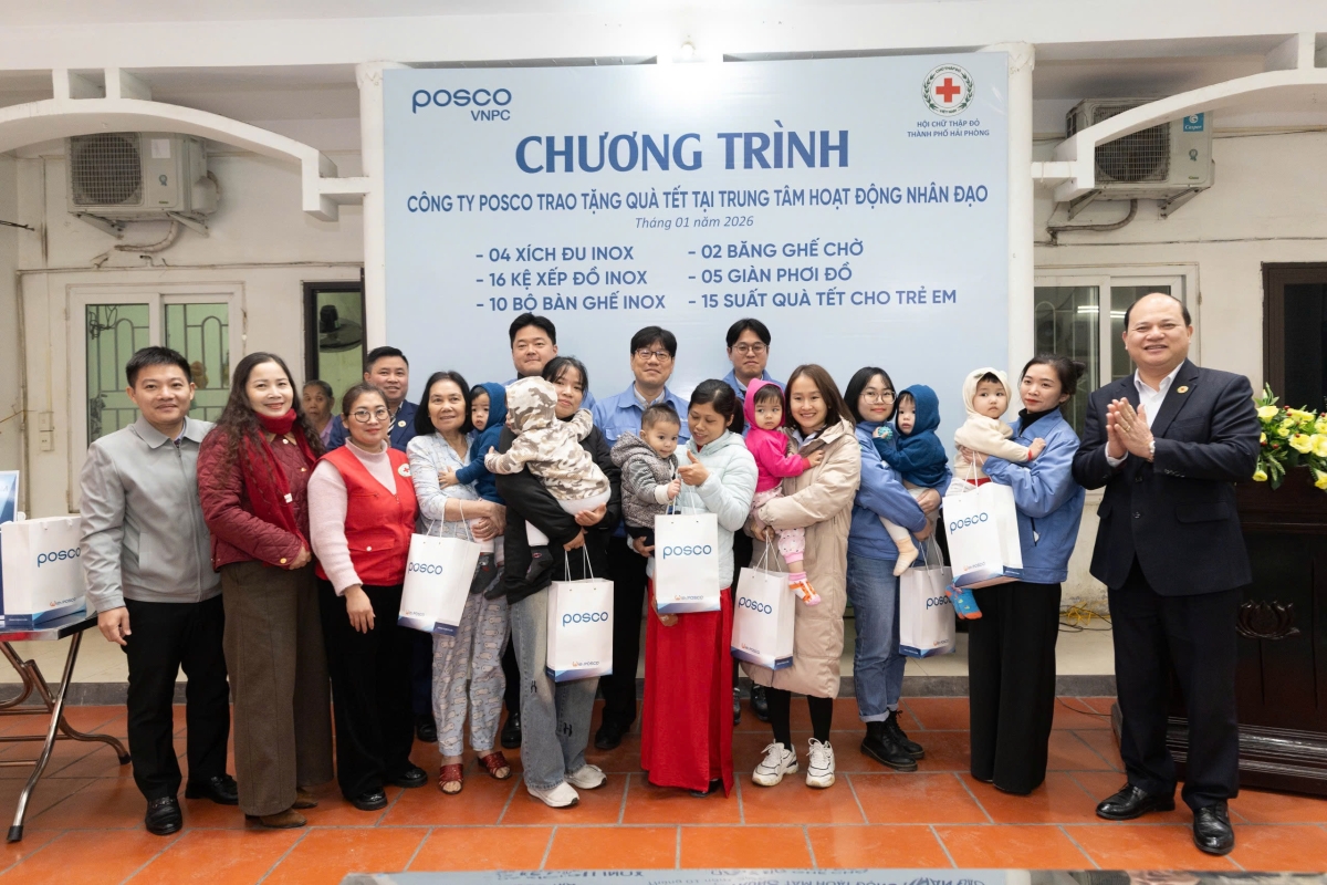 Sáng ngày 22/01, nhân dịp Xuân Bính Ngọ năm 2026, Công ty Cổ phần Trung tâm Gia công POSCO Việt Nam đã tổ chức đoàn đến thăm và trao quà Tết cho các cháu bị bỏ rơi đang được chăm sóc, nuôi dưỡng tại Trung tâm Hoạt động nhân đạo (đơn vị trực thuộc Hội Chữ thập đỏ thành phố Hải Phòng).