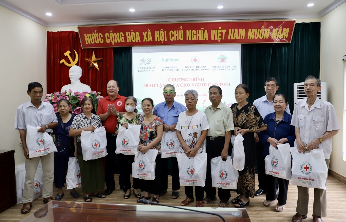 Sáng 29/7 tại trụ sở Hội Chữ thập đỏ thành phố, Hội Chữ thập đỏ thành phố Hải Phòng phối hợp với Quỹ phát triển tài năng Việt và Hội Người cao tuổi thành phố tổ chức trao tặng sản phẩm sữa cho người cao tuổi, neo đơn, hoàn cảnh khó khăn tại thành phố Hải Phòng.