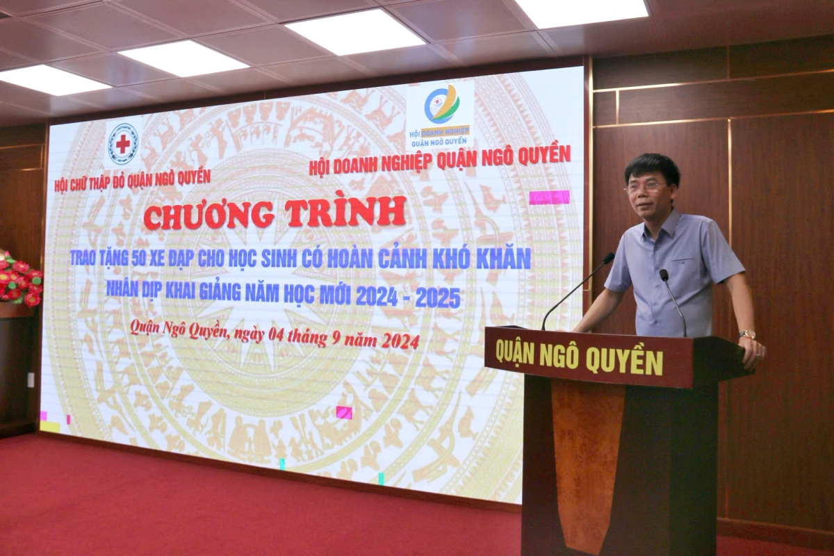 Nhân dịp khai giảng năm học mới 2024 – 2025, chiều ngày 4/9 tại Trung tâm chính trị - hành chính quận Ngô Quyền, Hội Chữ thập đỏ quận Ngô Quyền phối hợp với Hội Doanh nghiệp quận Ngô Quyền tổ chức Chương trình trao tặng xe đạp cho học sinh có hoàn cảnh khó khăn trên địa bàn quận.