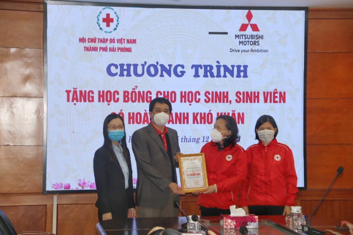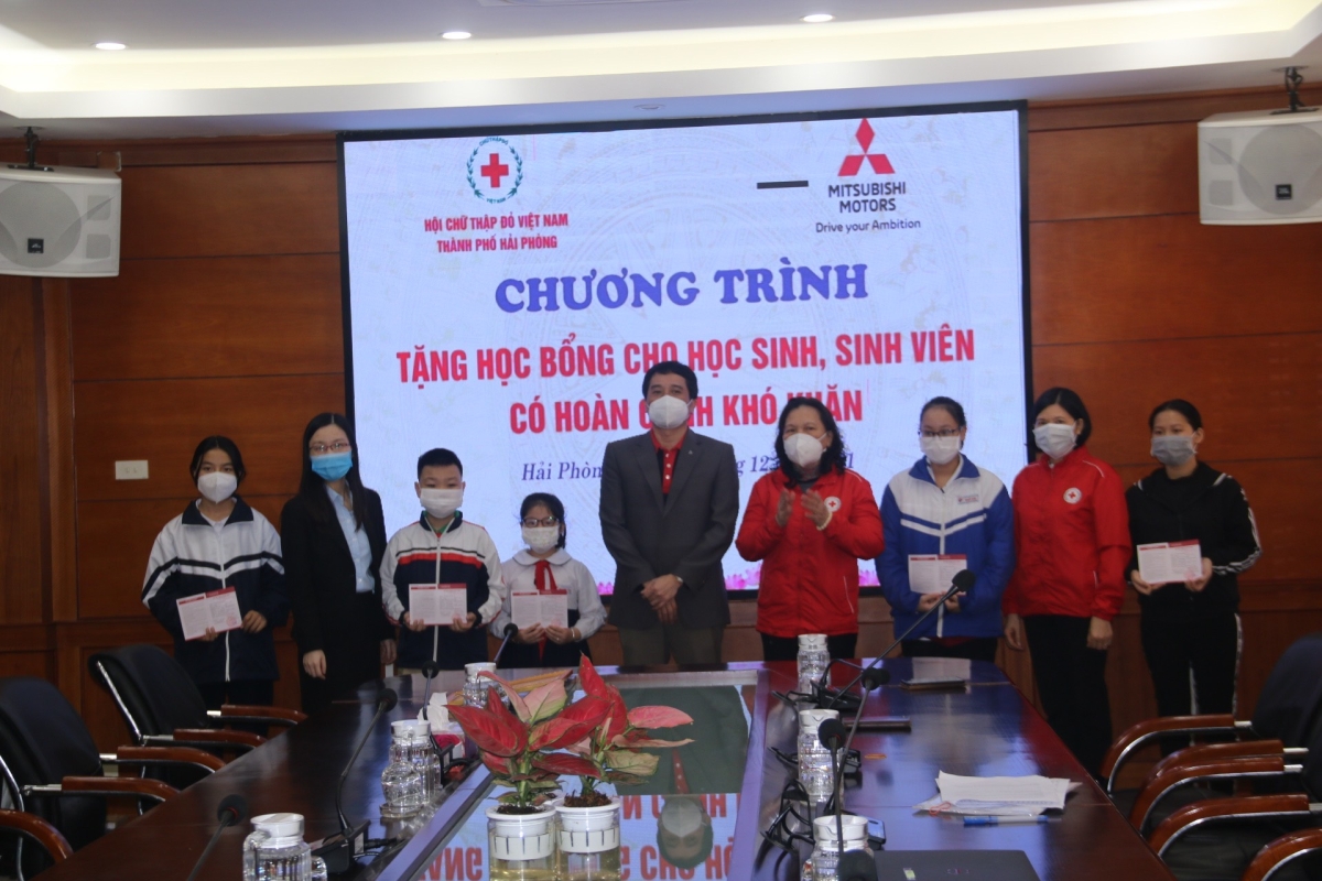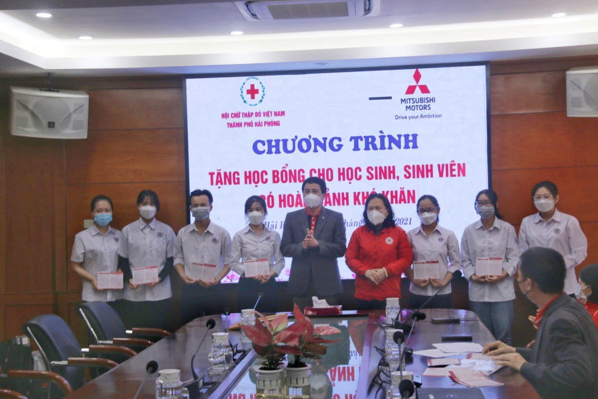 Triển khai chương trình phối hợp giữa Hội Chữ thập đỏ Việt Nam và Công ty TNHH Ô tô Mitsubishi Việt Nam, sáng ngày 25/12, tại Ngân hàng Nông nghiệp &PTNT chi nhánh Hải Phòng, Hội  Chữ thập đỏ thành phố tổ chức chương trình trao tặng học bổng cho các học sinh, sinh viên nghèo vượt khó do Công ty TNHH Ô tô Mitsubishi Việt Nam tài trợ. Dự chương trình có bà Cao Thị Phượng – Chủ tịch Hội Chữ thập đỏ thành phố, bà Phạm Thị Hòa – Phó Chủ tịch Hội Chữ thập đỏ thành phố, ông Đào Công Quyết – Tổng Trưởng phòng Mitsubishi Motors Việt Nam Chi nhánh Hà Nội, bà Đặng Thị Minh Hằng – Giám đốc điều hành Nhà phân phối Mitsubishi Hải Phòng; Thường trực Hội Chữ thập đỏ các quận huyện, đại diện các Trường Đại học và các học sinh, sinh viên được nhận học bổng.