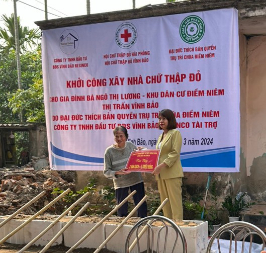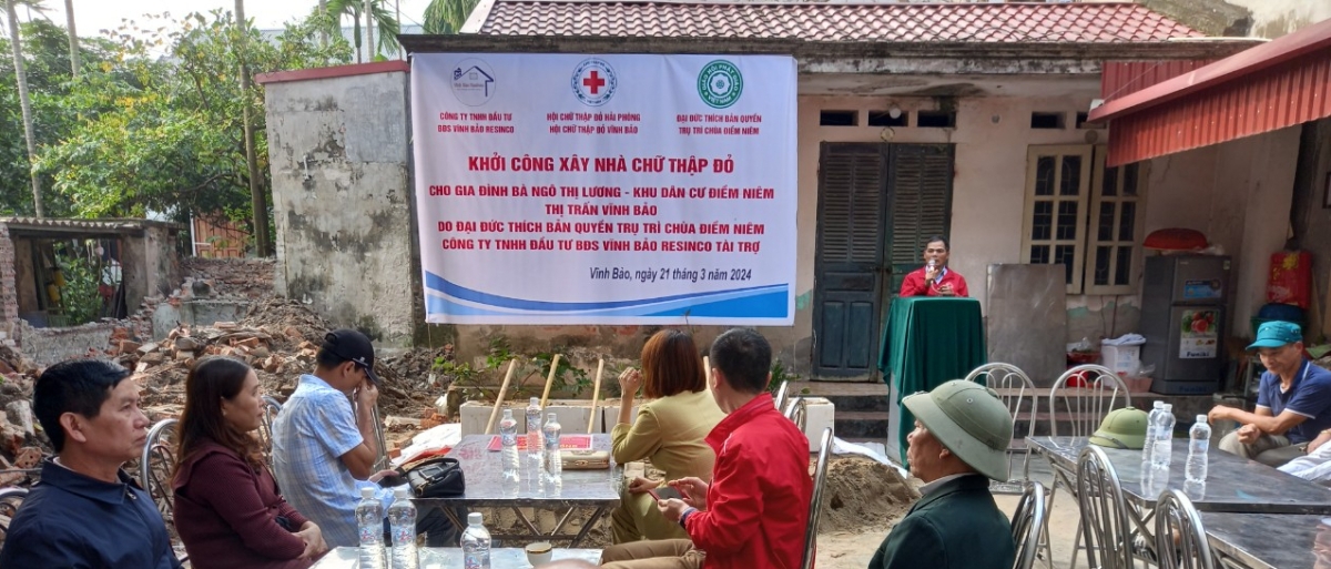 Hưởng ứng Tháng nhân đạo năm 2024, chiều ngày 21/3/2024, Hội Chữ thập đỏ thành phố phối hợp cùng nhà tài trợ khởi công xây nhà Chữ thập đỏ cho bà Ngô Thị Lương – khu dân cư Điềm Niêm, thị trấn Vĩnh Bảo.