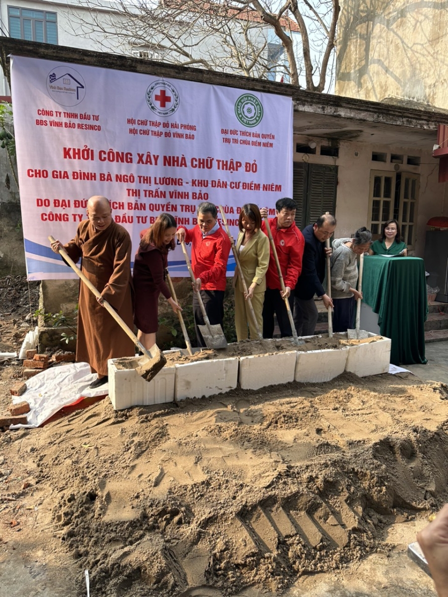Tham dự lễ động thổ có ông Đào Trọng Trung – Chủ tịch Hội Chữ thập đỏ thành phố; ông Bùi Mạnh Phúc - Phó Chủ tịch Hội Chữ thập đỏ thành phố; lãnh đạo UBND huyện Vĩnh Bảo; Thường trực Hội Chữ thập đỏ huyện Vĩnh Bảo. Về phía nhà tài trợ có Đại Đức Thích Bản Quyền – Trụ trì chùa Điềm Niêm; lãnh đạo Công ty TNHH Đầu tư Bất động sản Vĩnh Bảo Resinco cùng gia đình bà Ngô Thị Lương – khu dân cư Điềm Niêm, thị trấn Vĩnh Bảo.