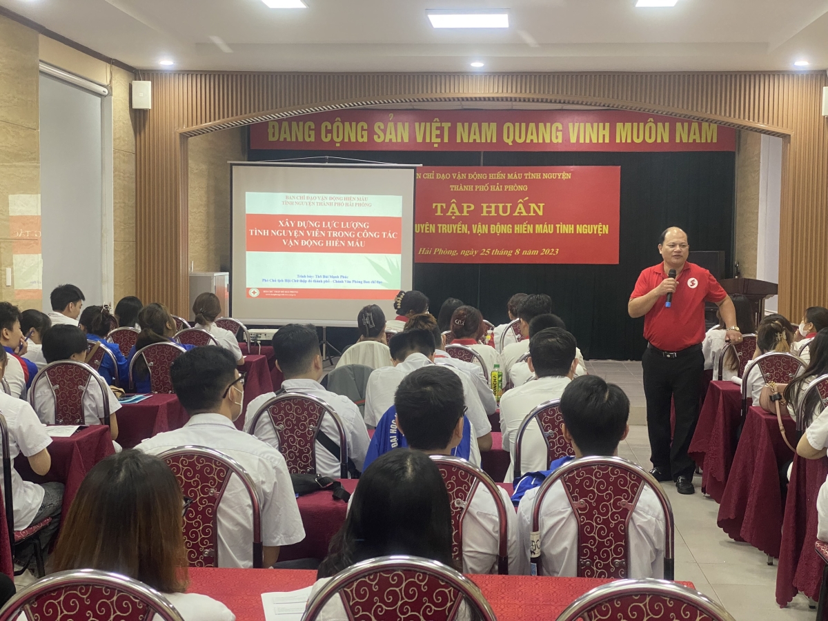 Thực hiện Chương trình hoạt động năm 2023, trong 02 ngày 25-26/8/2023 tại Hội trường Nhà khách Thành ủy Hải Phòng, Hội Chữ thập đỏ thành phố tổ chức lớp Tập huấn công tác tuyên truyền, vận động HMTN năm 2023.