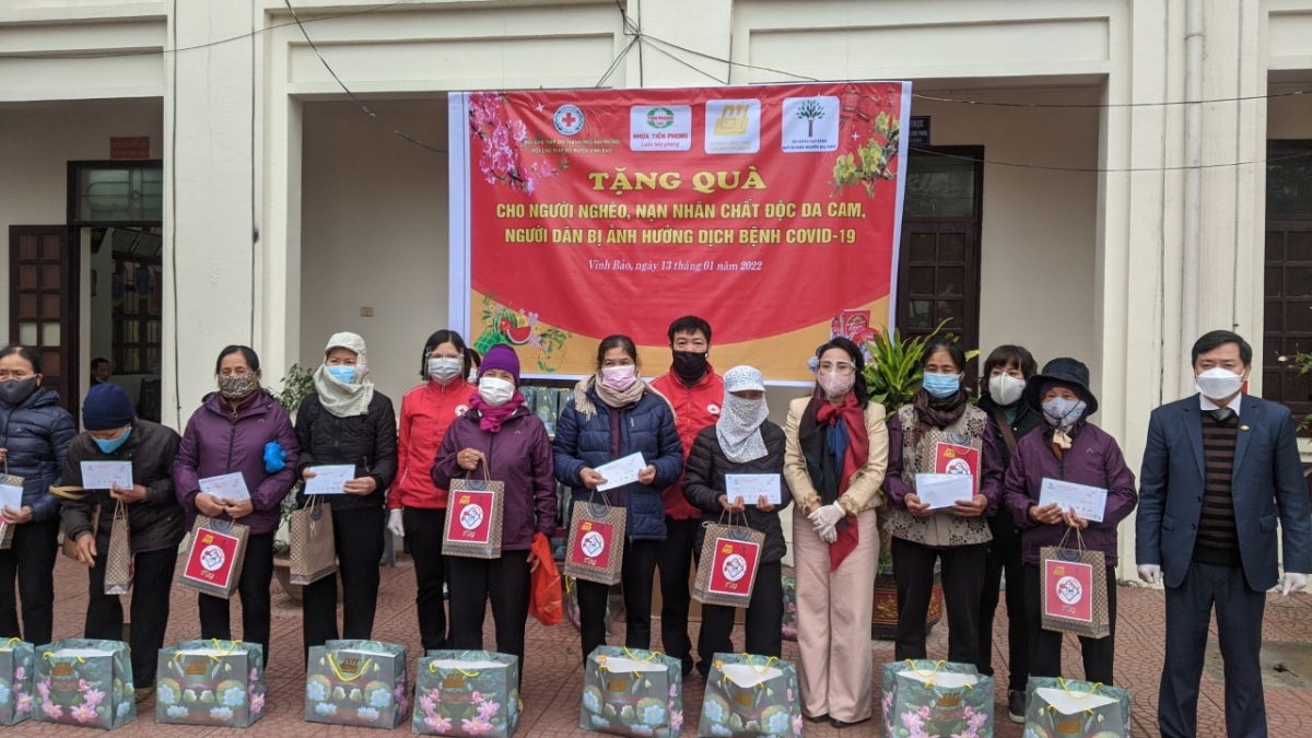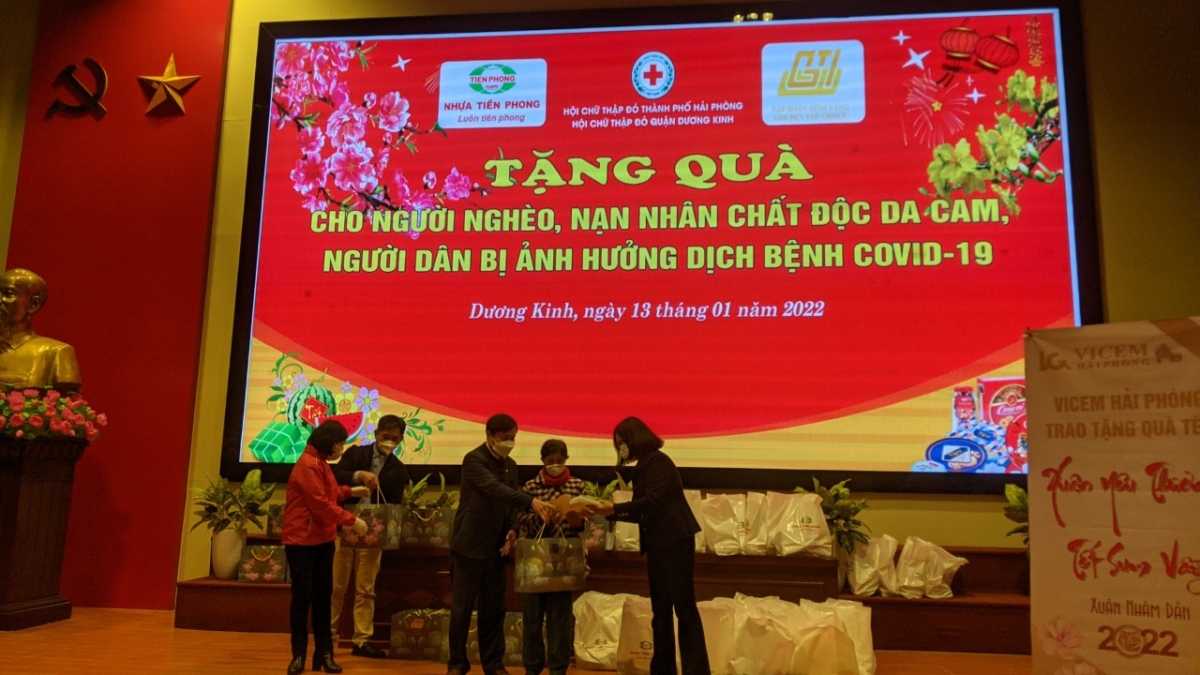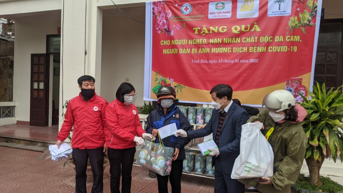 Trong ngày 13/01, Hội Chữ thập đỏ thành phố và Hội Chữ thập đỏ huyện Vĩnh Bảo, Tiên Lãng, An Lão, quận Dương Kinh, Hải An tổ chức chương trình trao tặng quà Tết cho người dân có hoàn cảnh khó khăn, nạn nhân chất độc da cam, người dân bị ảnh hưởng bởi dịch Covid-19 do Công ty Cổ phần Nhựa Thiếu niên Tiền phong, Tập đoàn Đỉnh Vàng, Tập đoàn Sao Sáng – Qũy Từ thiện Nguyễn Gia Thảo tài trợ. Dự chương trình có bà Phạm Thị Hòa – Phó Chủ tịch Hội Chữ thập đỏ thành phố, ông Phạm Hồng Sỹ - Chủ tịch Công đoàn Công ty Cổ phần Nhựa Thiếu niên Tiền phong, bà Nguyễn Kim Thúy – Chủ tịch HĐQT, Tổng Giám đốc Tập đoàn Đỉnh Vàng, đại diện Tập đoàn Sao Sáng – Qũy Từ thiện Nguyễn Gia Thảo và Thường trực Hội Chữ thập đỏ các quận, huyện có đối tượng hưởng lợi.