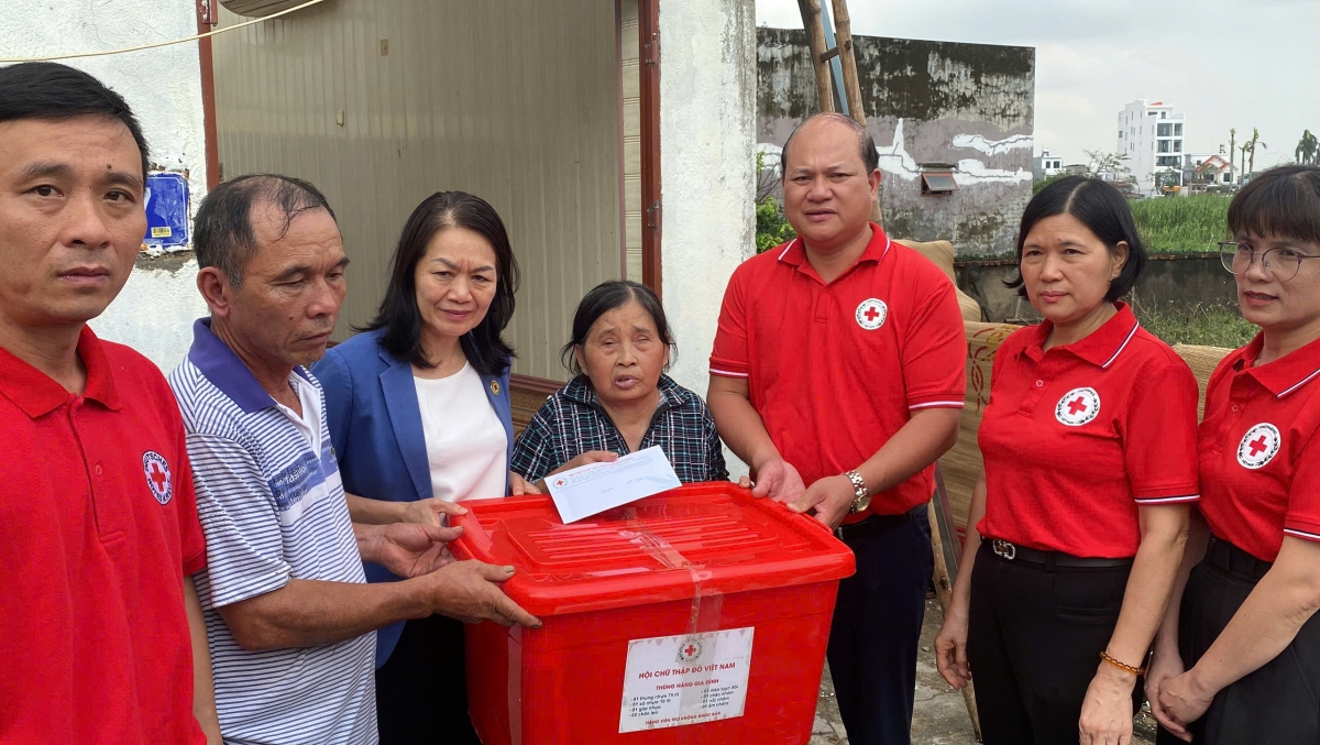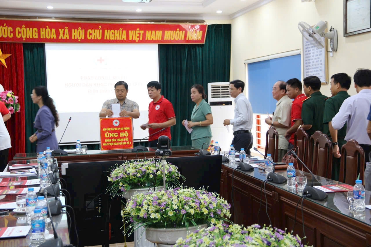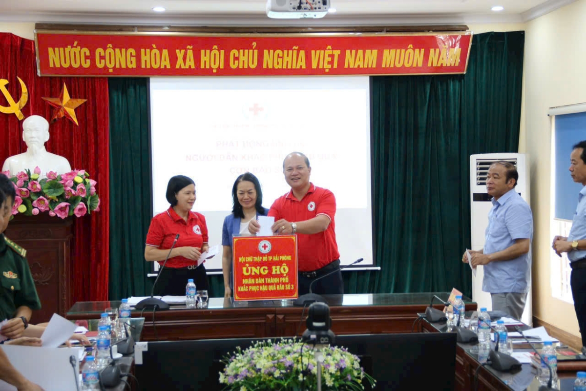 Ngay sau hội nghị bà Bùi Thị Hoà, Bí thư Đảng đoàn, Chủ tịch Trung ương Hội Chữ thập đỏ Việt Nam cùng Thường trực Hội Chữ thập đỏ thành phố đã trực tiếp đến thăm hỏi, động viên, chia sẻ và trao tiền, thùng hàng gia đình cho 2 hộ gia đình có hoàn cảnh khó khăn thuộc phường Anh Dũng, Hải Thành quận Dương Kinh khắc phục hậu quả cơn bão số 3.