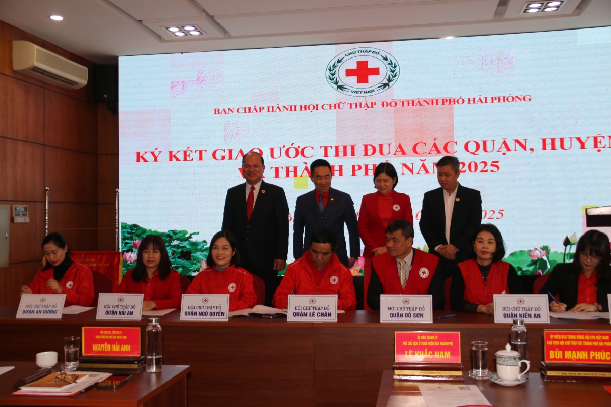 Cũng tại hội nghị, Thường trực Hội Chữ thập đỏ các quận, huyện và thành phố Thủy Nguyên ký kết giao ước thi đua năm 2025.