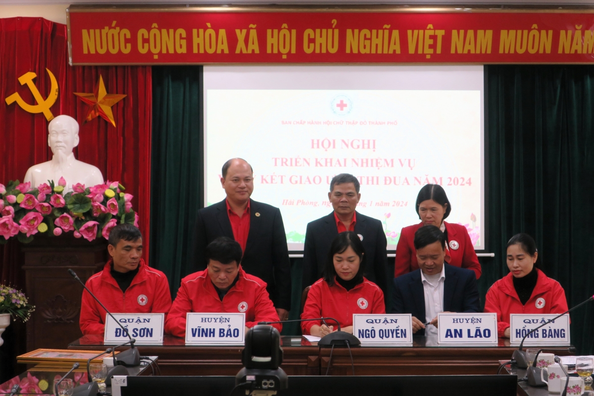 Hưởng ứng phong trào “Tết Nhân ái” năm 2024, tại Hội nghị, đại diện các tổ chức, doanh nghiệp đã ủng hộ tổng số tiền lên tới gần 2 tỷ đồng. Nhân dịp này, Trung ương Hội Chữ thập đỏ Việt Nam trao tặng Cờ thi đơn vị xuất sắc tiêu biểu cho Hội Chữ thập đỏ quận Hồng Bàng; Hội Chữ thập đỏ thành phố trao tặng Giấy khen cho 5 tập thể và 8 cá nhân có thành tích xuất sắc trong hoạt động nhân đạo của thành phố. Đại diện Hội Chữ thập đỏ các quận, huyện thông qua nội dung và ký kết giao ước thi đua năm 2024.