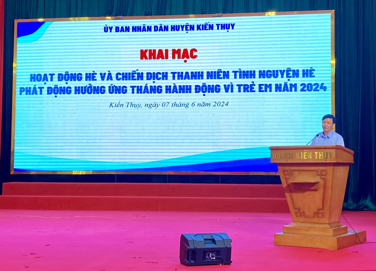 Thực hiện kế hoạch hè năm 2024, sáng 7/6, UBND huyện Kiến Thụy tổ chức Khai mạc hoạt động hè và Chiến dịch thanh niên tình nguyện hè, phát động hưởng ứng Tháng hành động vì trẻ em năm 2024.