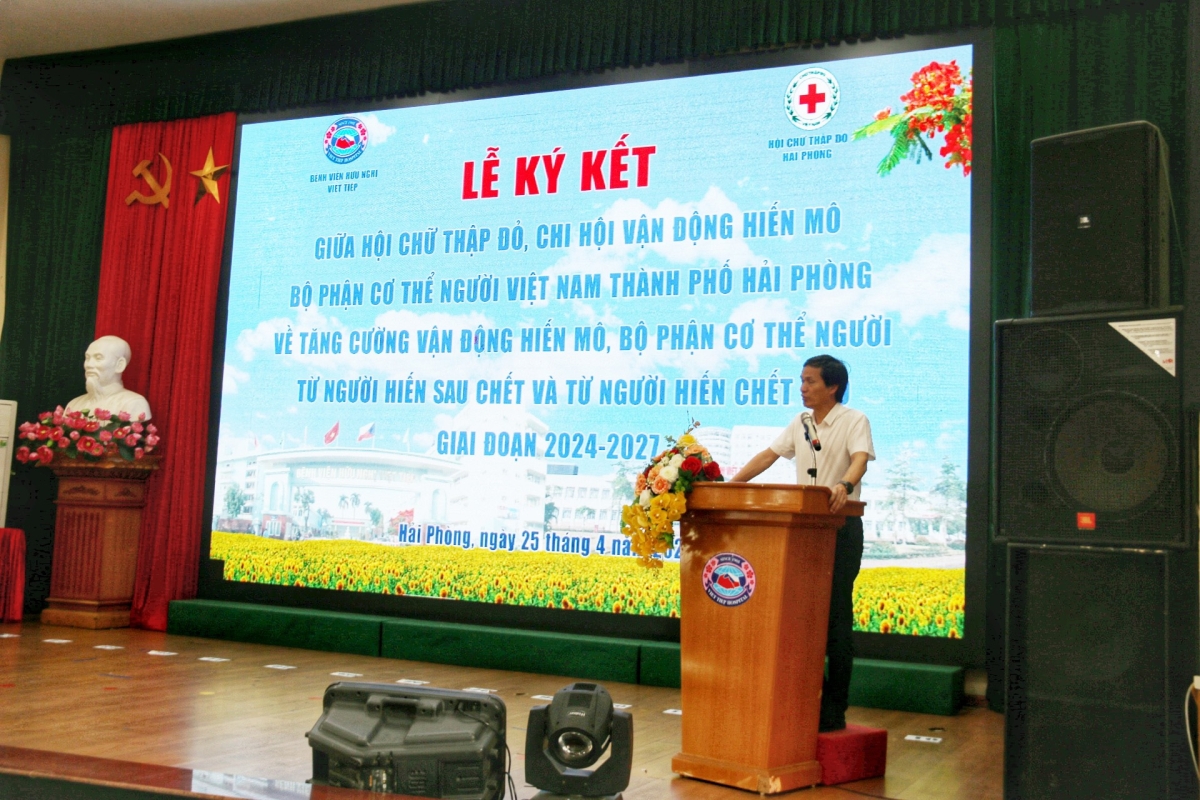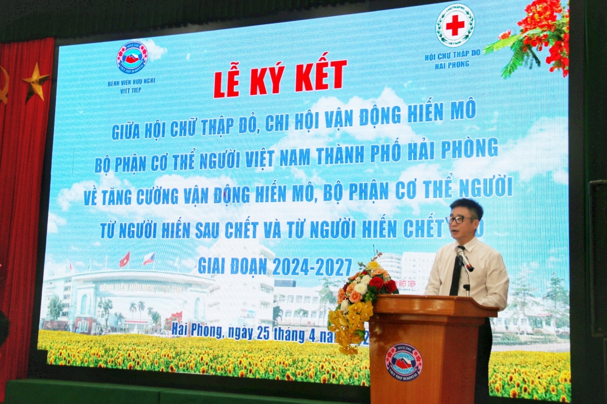 Phát biểu tại Hội nghị, TS.BS Đỗ Mạnh Thắng, Giám đốc Bệnh viện Hữu nghị Việt Tiệp, Chủ tịch Chi hội Vận động hiến mô, bộ phận cơ thể người Việt Nam thành phố Hải Phòng cho biết: Đến nay trên cả nước đã tiếp nhận hơn 76.000 người đăng ký hiến mô, tạng sau chết, chết não. Có khoảng hơn 7.000 người được sống cuộc đời thứ 2 sau khi được ghép thành công. Chi hội Vận động hiến mô, bộ phận cơ thể người Việt Nam thành phố Hải Phòng được thành lập với mục tiêu đoàn kết, thống nhất cùng vận động mọi người dân và xã hội tự nguyện đăng ký hiến và hiến mô, tạng khi còn sống hoặc sau chết não vì mục đích nhân đạo cứu chữa người bệnh. Chương trình phối hợp giữa Chi hội và Hội Chữ thập đỏ thành phố có vai trò rất quan trọng, nhằm tổ chức các hoạt động truyền thông, vận động hiến tặng mô, bộ phận cơ thể người sau khi chết và từ người hiến chết não/chết tim; lồng ghép với tuyên truyền vận động hiến máu tình nguyện. Đồng thời, phối hợp tổ chức đào tạo, tập huấn, bồi dưỡng kiến thức, kỹ năng về tuyên truyền, vận động hiến mô, bộ phận cơ thể người. Triển khai các hoạt động chăm lo, thăm hỏi, động viên gia đình có người hiến tặng mô, bộ phận cơ thể người sau khi chết và từ người hiến chết não/ chết tim…