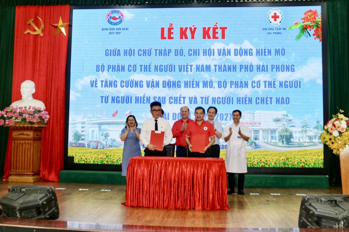 Lễ ký kết Chương trình phối hợp giữa Hội Chữ thập đỏ thành phố Hải Phòng và Chi hội Vận động hiến mô bộ phận cơ thể người Việt Nam thành phố về tăng cường vận động hiến mô, bộ phận cơ thể người từ người hiến sau chết và từ người hiến chết não, giai đoạn 2
