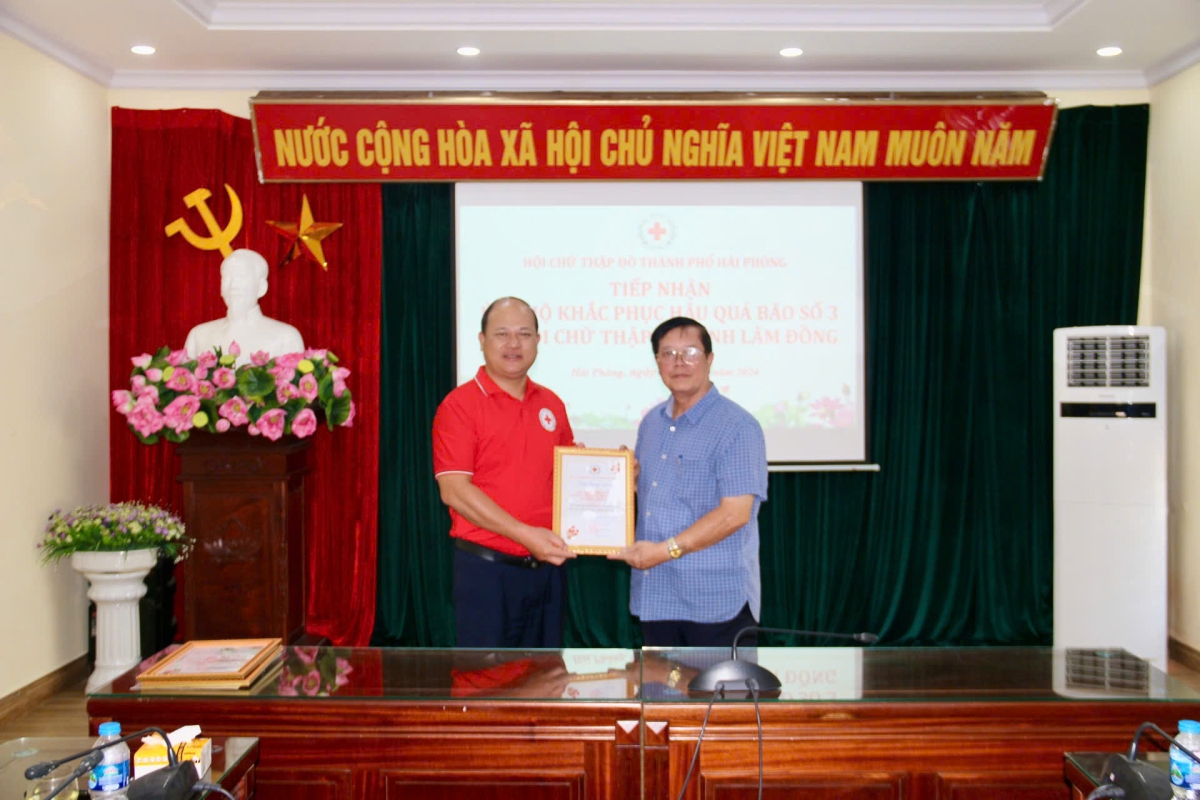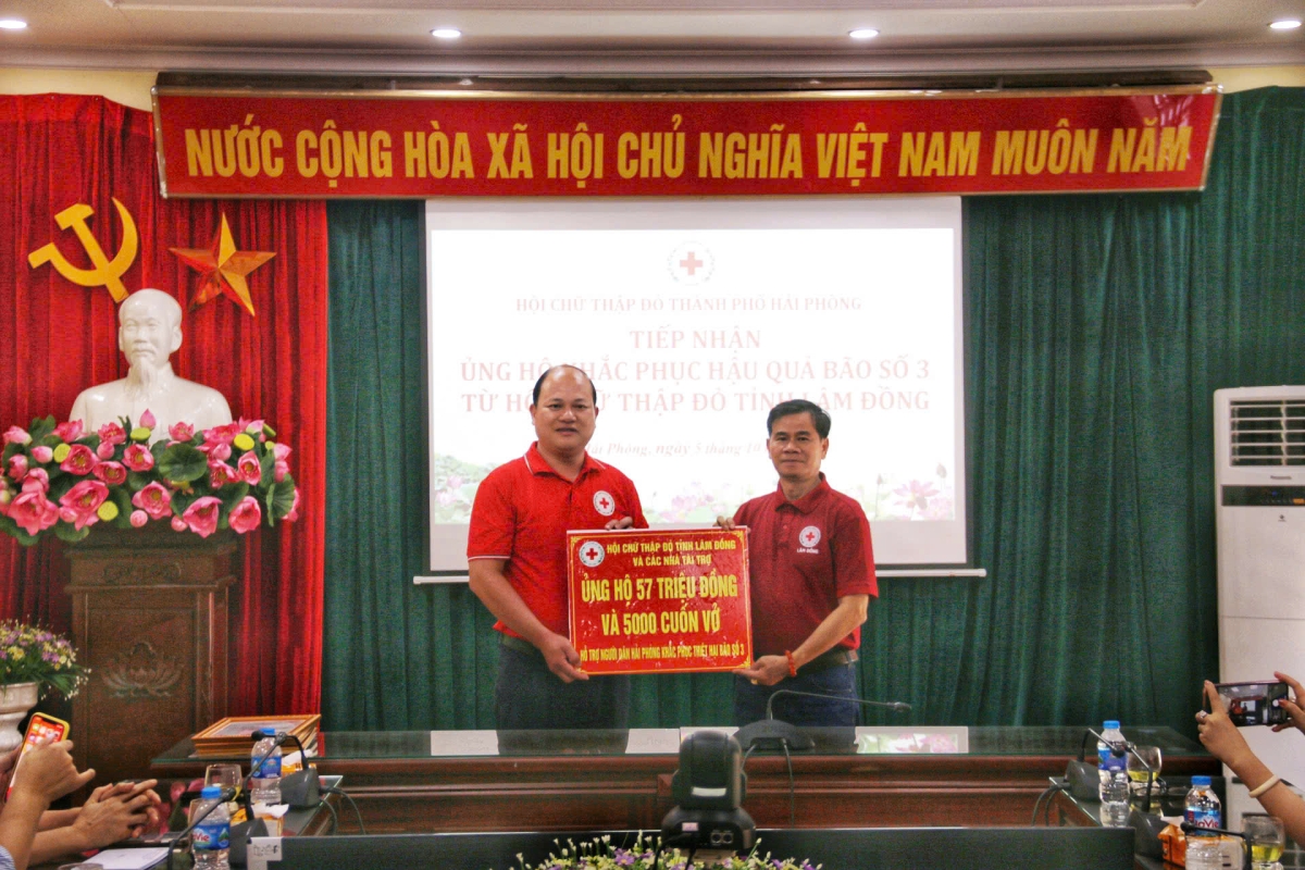 Hội Chữ thập đỏ thành phố tiếp nhận ủng hộ kinh phí 57 triệu tiền mặt và 5.000 cuốn vở cho các cháu học sinh. Sau khi tiếp nhận ủng hộ Hội Chữ thập đỏ thành phố Hải Phòng và Hội Chữ thập đỏ tỉnh Lâm Đồng cùng nhà tài trợ đi trao trực tiếp 5.000 cuốn vở cho trường Tiểu học Anh Dũng, quận Dương Kinh và 05 hộ gia đình có hoàn cảnh khó khăn trên địa bàn quận Kiến An và Dương Kinh chịu thiệt hại bởi bão số 3.
